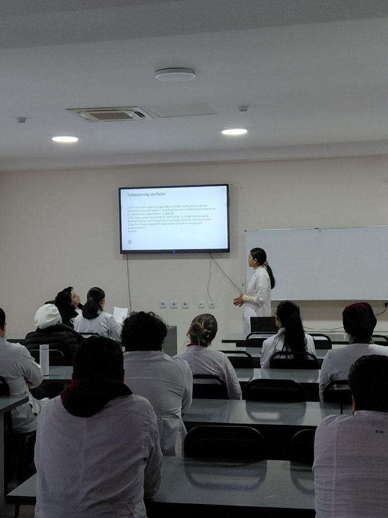 Coursework http://dn.nursing.tma.uz/article/2829 http://dn.nursing.tma.uz/article/2829#respond Mon, 22 Sep 2025 04:33:44 +0000 http://dn.nursing.tma.uz/?p=2829 Photo scenes from an ongoing lesson conducted jointly by professors, teachers, and students of the Department of Allergology, Clinical Immunology, and Nursing.