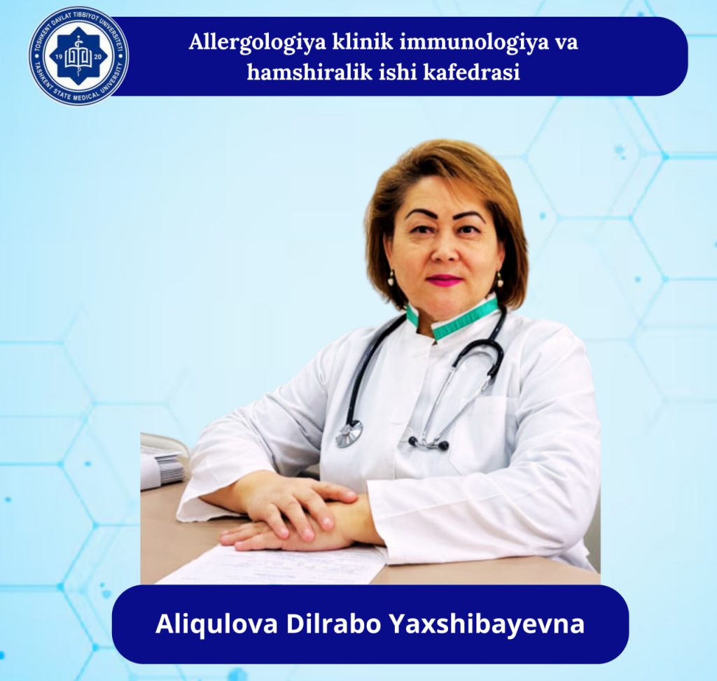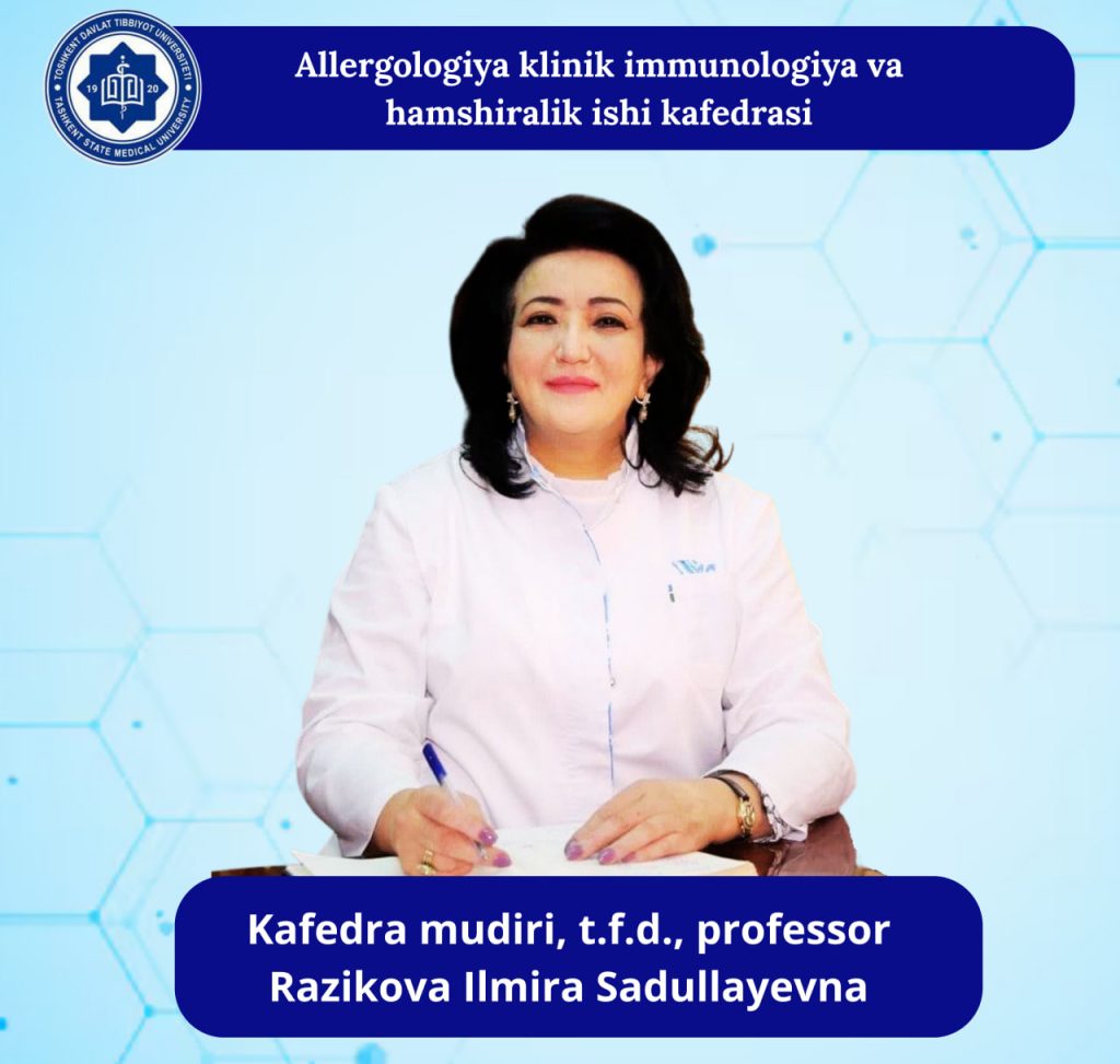 2018 yili Toshkent tibbiyot akademiyasida Allergologiya, klinik immunologiya va hamshiralik ishi kafedrasi tashkil etilib, shu kafedraga mudir lavozimida ishlab kelmoqda.
